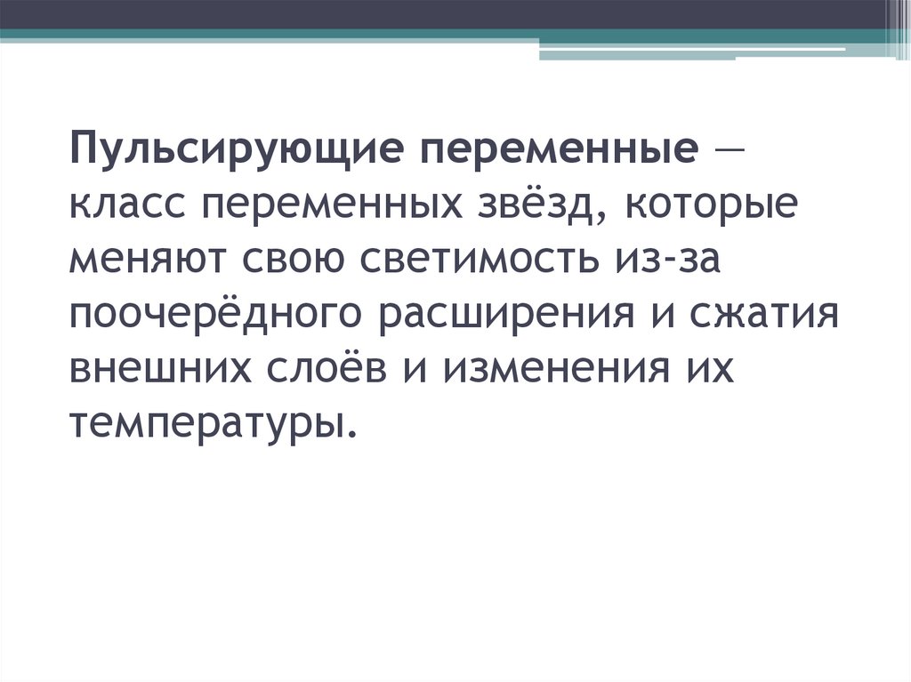 • Пульсирующие переменные — класс переменныхзвёзд, которые меняют свою светимость из-за