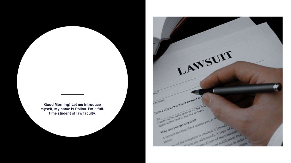 Good Morning! Let me introducemyself, my name is Polina. I’m a fulltime student of law faculty.
