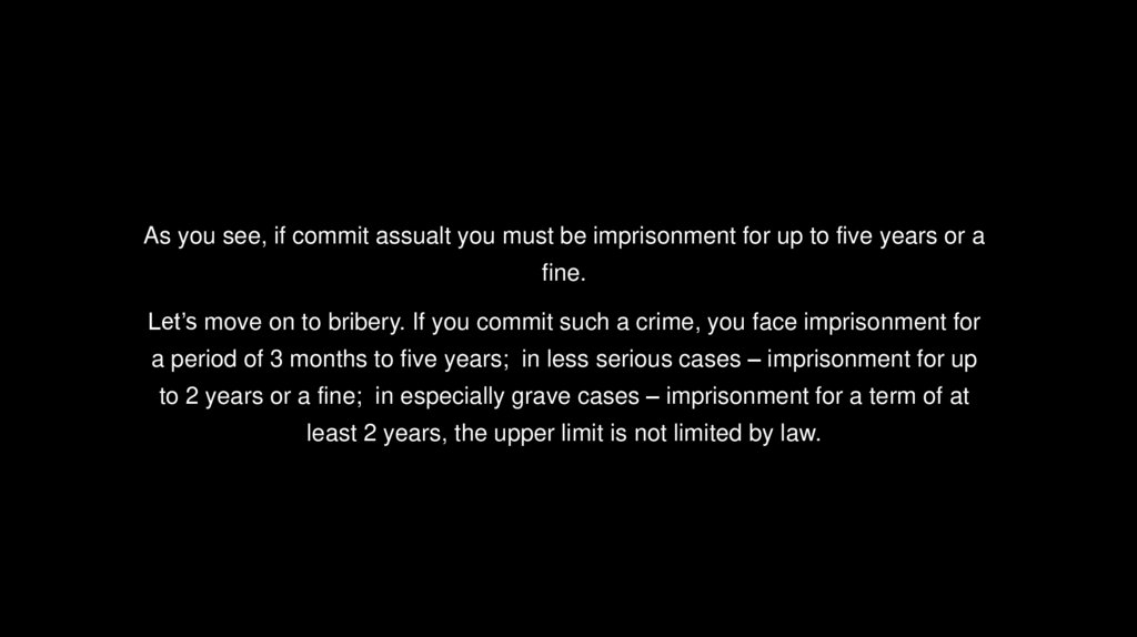 Let’s move on to bribery. If you commit such a crime, you face imprisonment for
