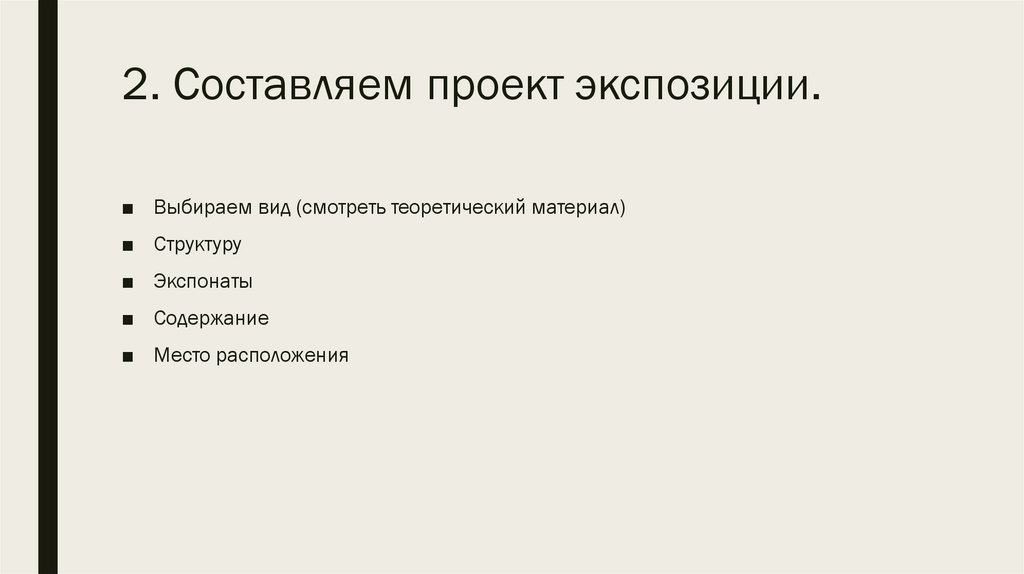 2. Составляем проект экспозиции.■ Выбираем вид (смотреть теоретический материал)