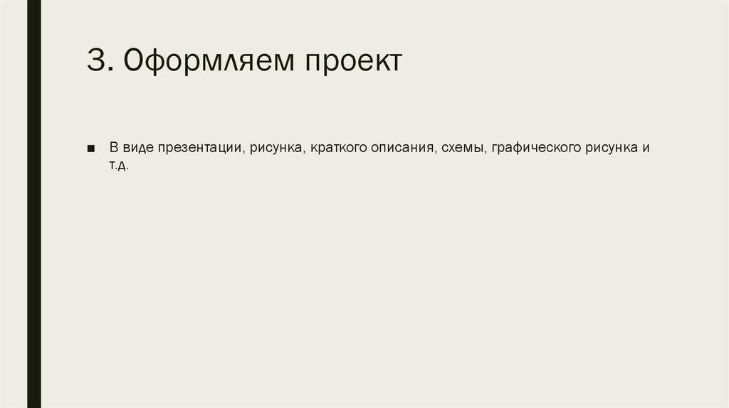 3. Оформляем проект■ В виде презентации, рисунка, краткого описания, схемы, графического рисунка и
