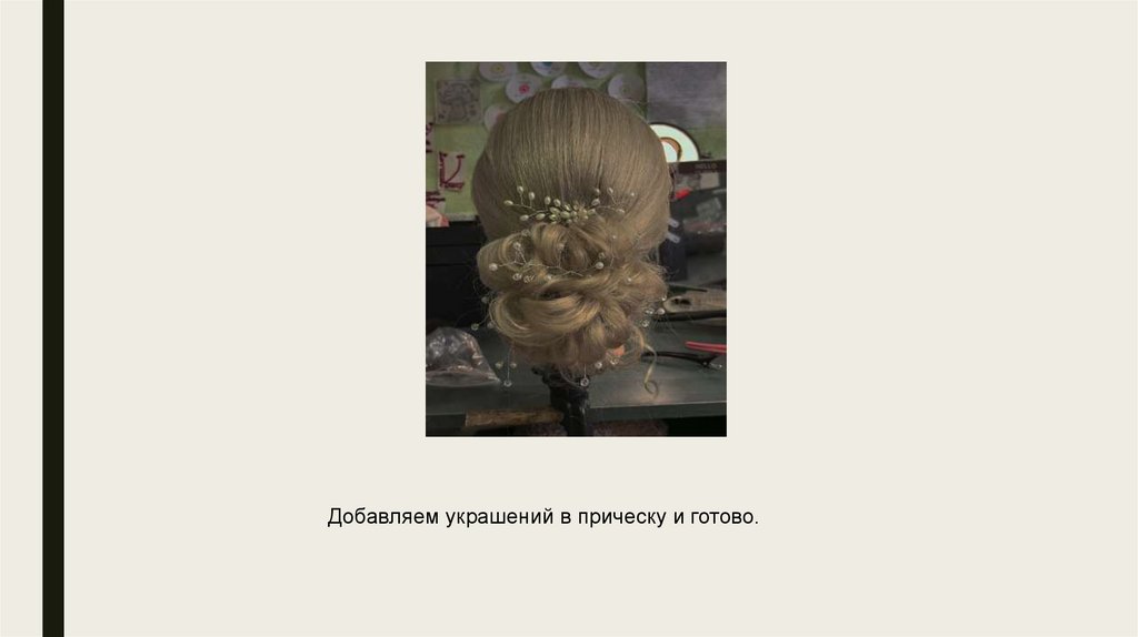 Оставшиеся волосы собираем в хвост при помощиневидимок, канцелярской резинки и лака.