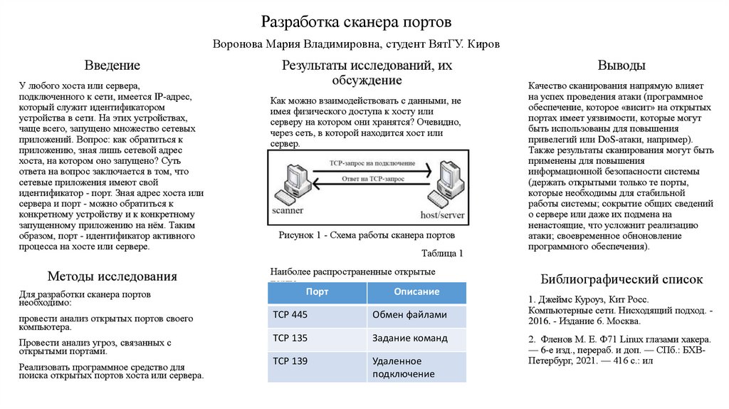Разработка сканера портовВоронова Мария Владимировна, студент ВятГУ. Киров