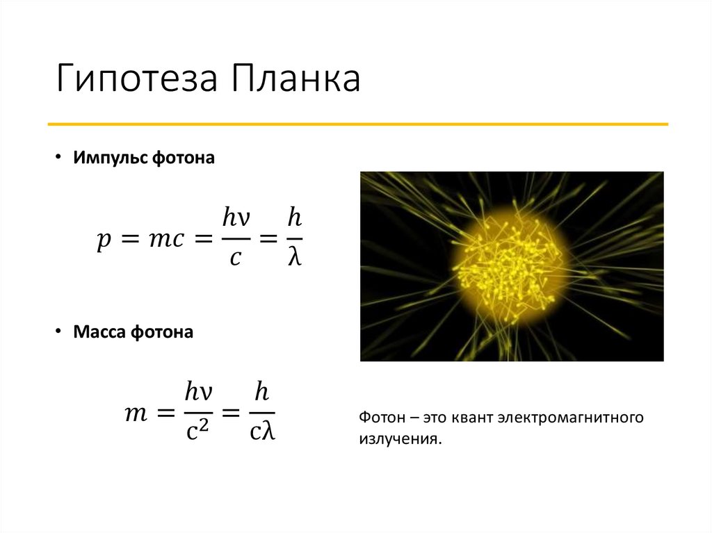Гипотеза ПланкаВ 1900 году М. Планк выдвинул
