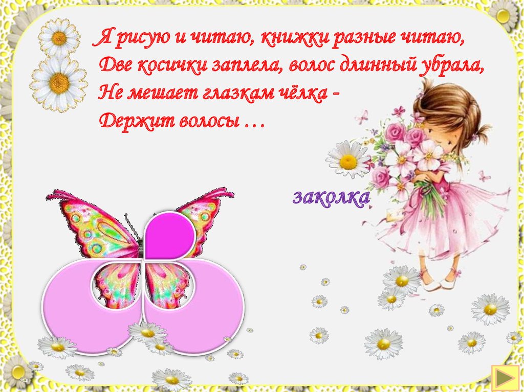 Я рисую и читаю, книжки разные читаю,Две косички заплела, волос длинный убрала,