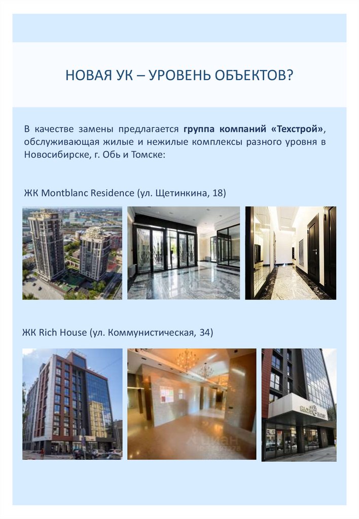 НОВАЯ УК – УРОВЕНЬ ОБЪЕКТОВ?В качестве замены предлагается группа компаний «Техстрой»,