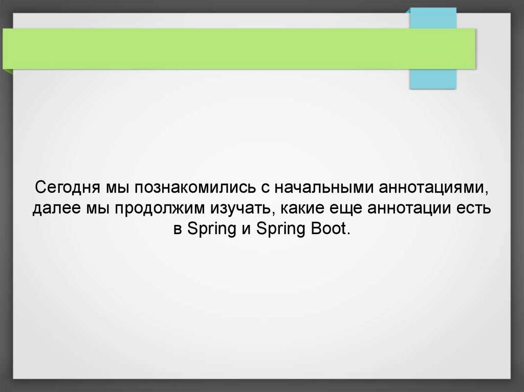 Сегодня мы познакомились с начальными аннотациями,далее мы продолжим изучать, какие еще аннотации есть