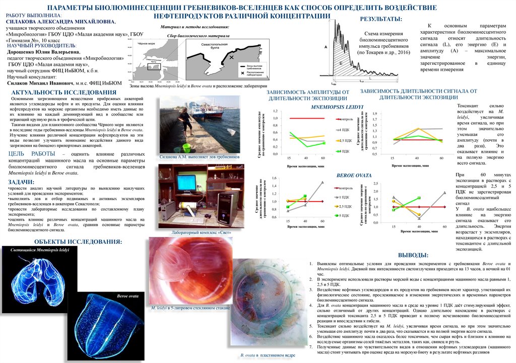 ПАРАМЕТРЫ БИОЛЮМИНЕСЦЕНЦИИ ГРЕБНЕВИКОВ-ВСЕЛЕНЦЕВ КАК СПОСОБ ОПРЕДЕЛИТЬ ВОЗДЕЙСТВИЕРАБОТУ ВЫПОЛНИЛА: