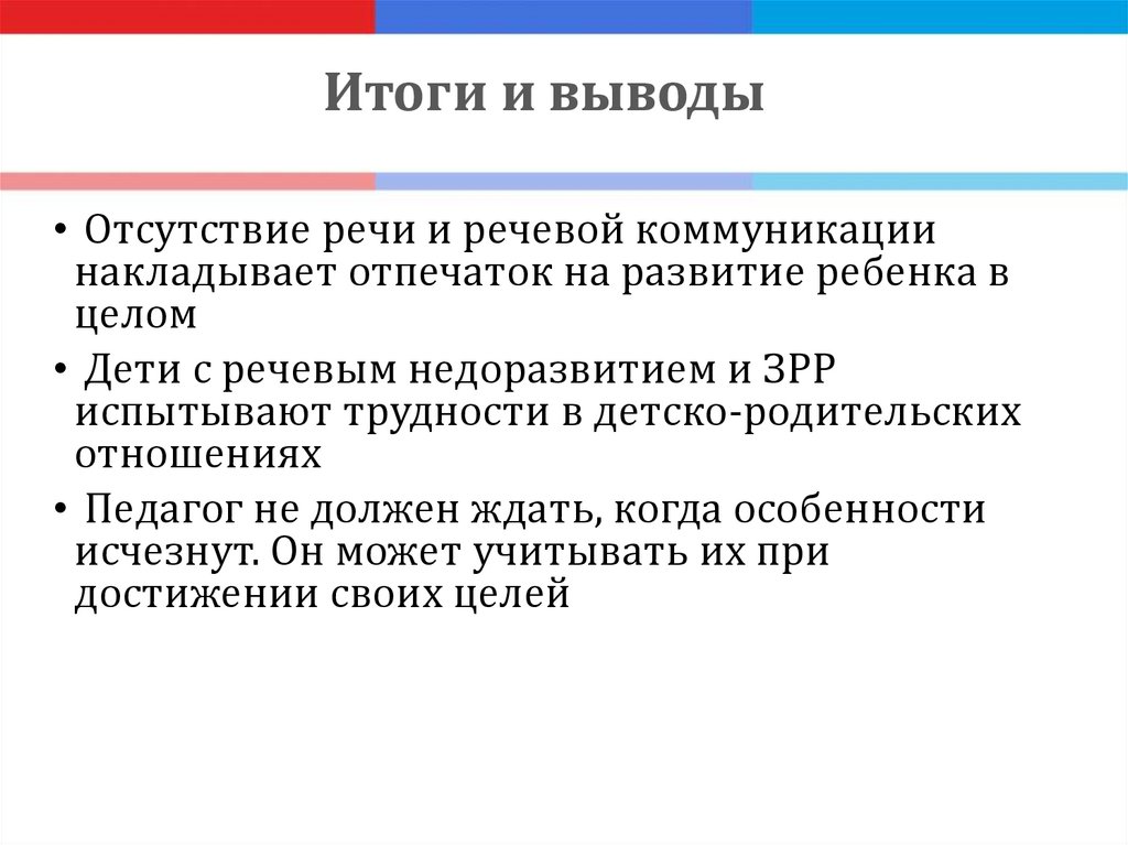 Итоги и выводы• Отсутствие речи и речевой коммуникации