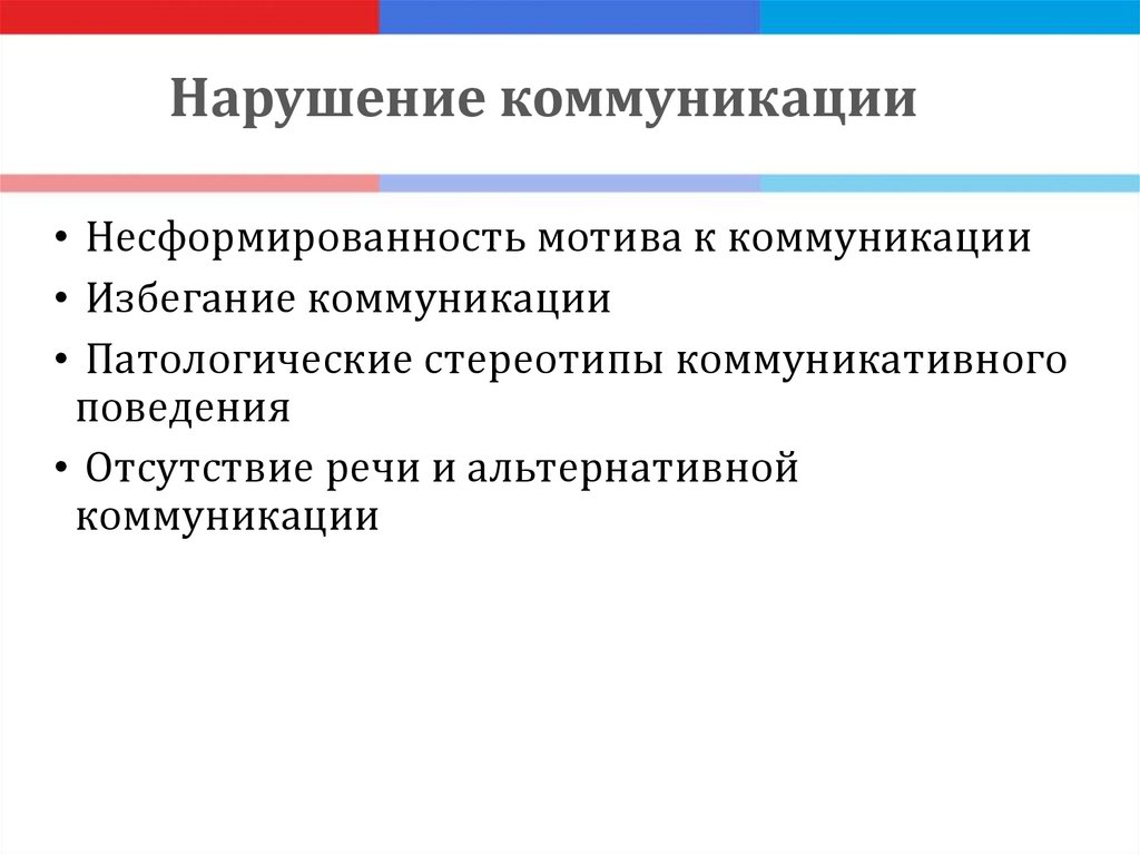 Нарушение коммуникации• Несформированность мотива к коммуникации