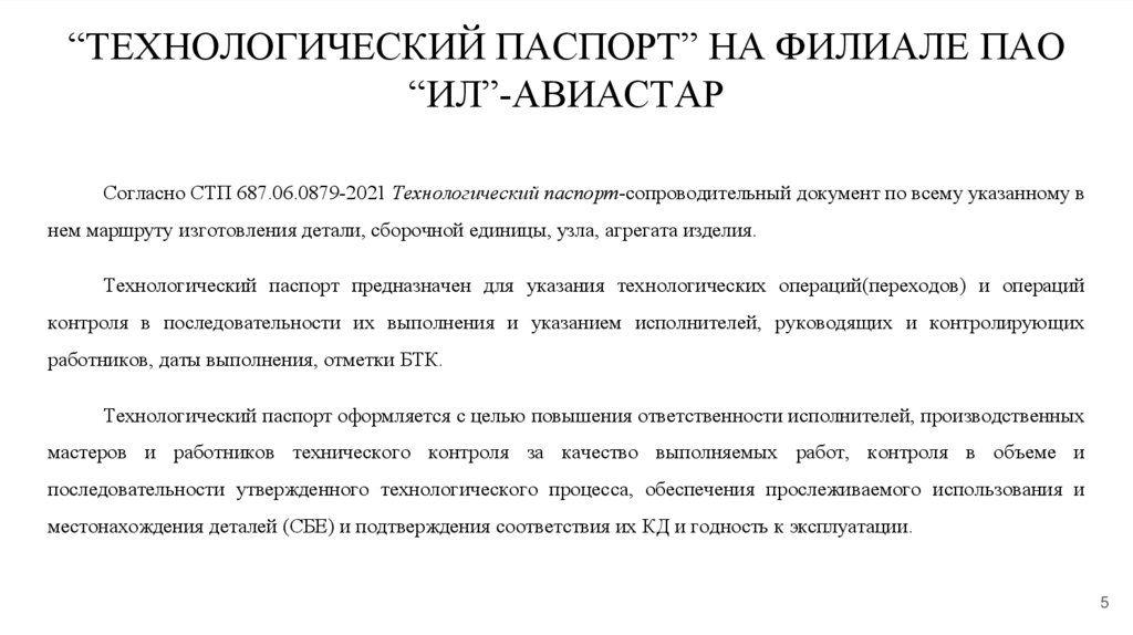 Согласно СТП 687.06.0879-2021 Технологический паспорт-сопроводительный документ по всему указанному в