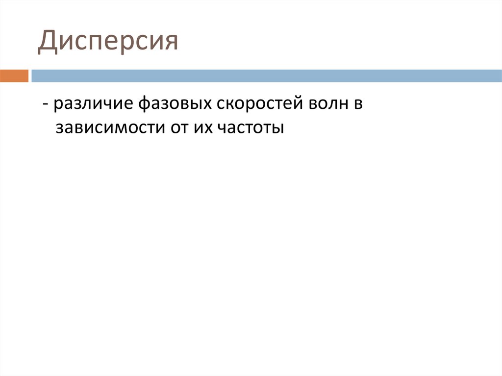 Дисперсия- различие фазовых скоростей волн в