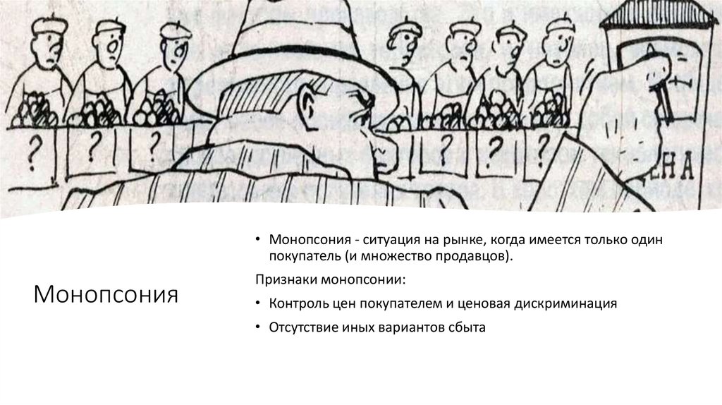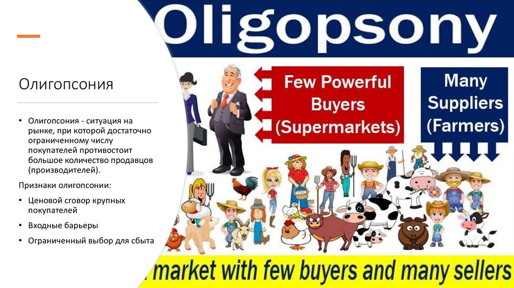 монопсония и олигопсония.