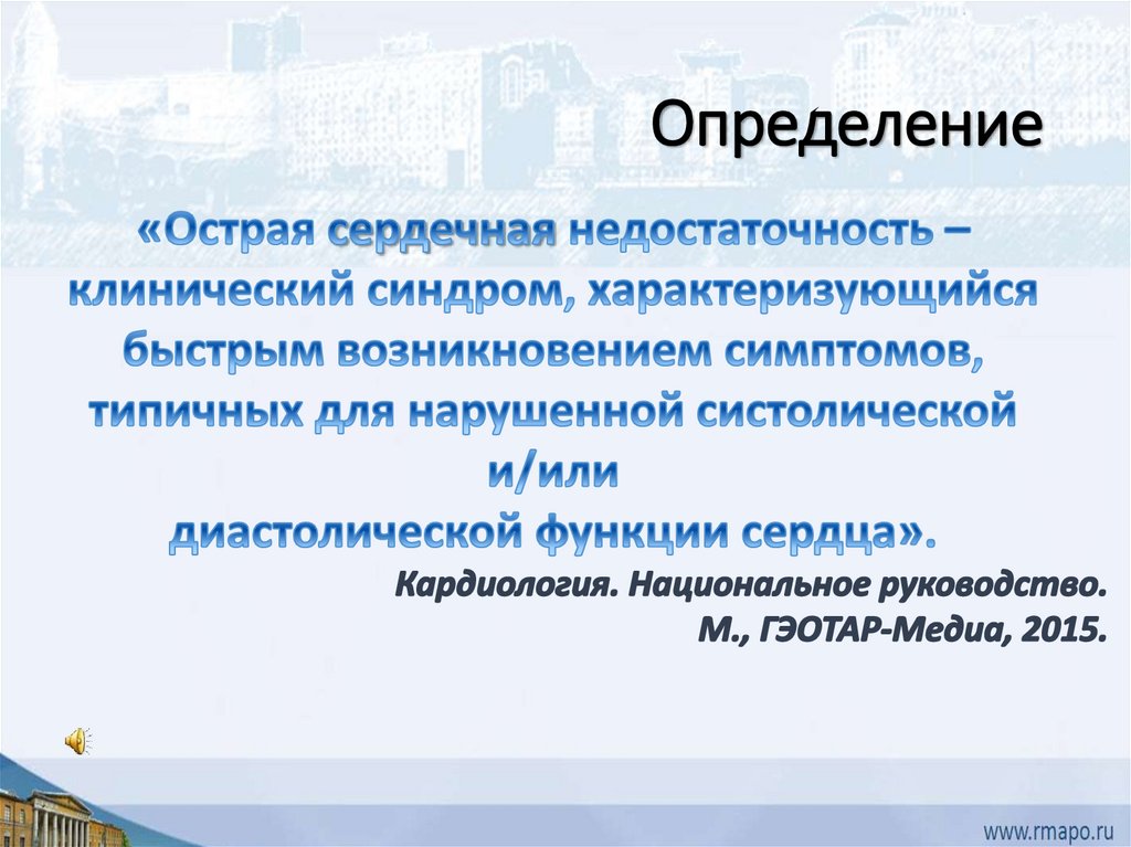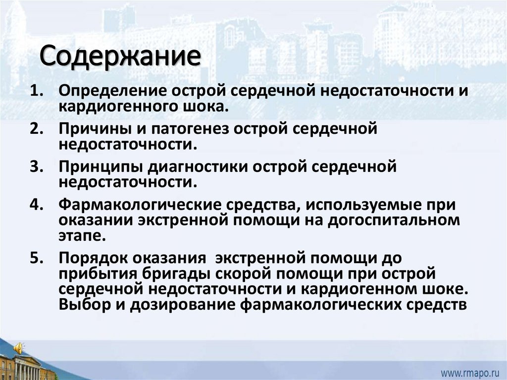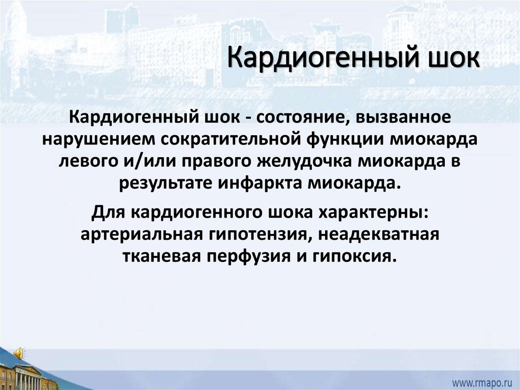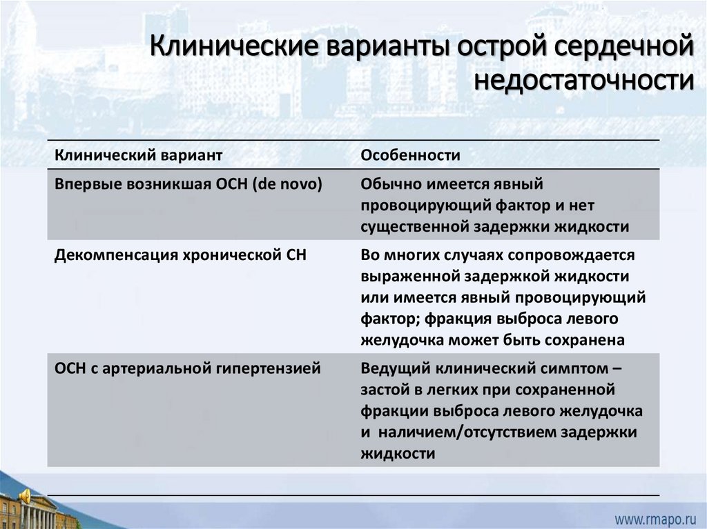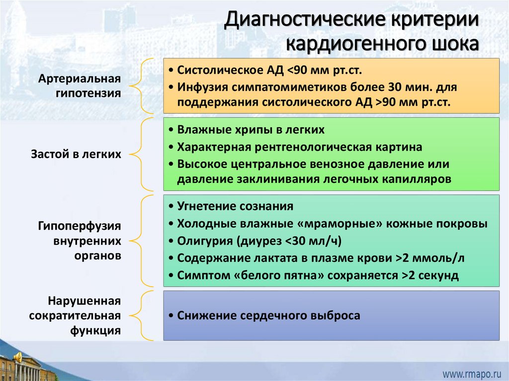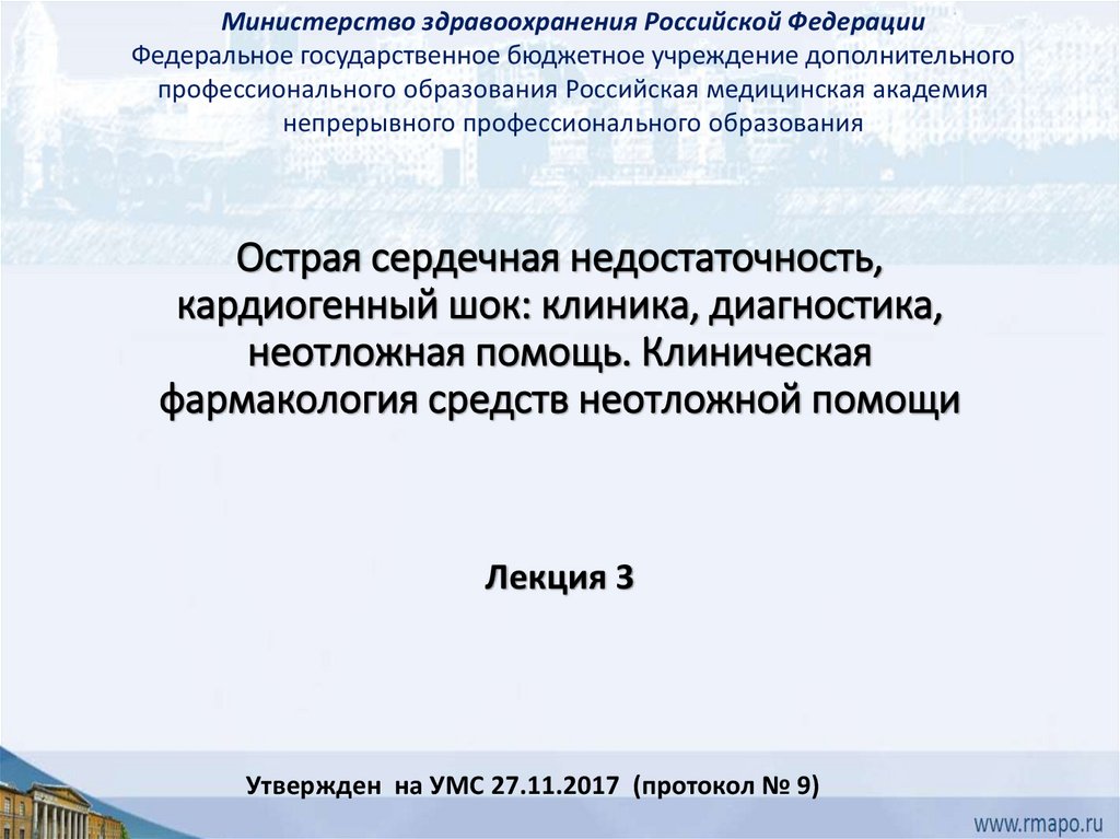 Острая сердечная недостаточность, кардиогенный шок: клиника, диагностика, неотложная помощь. Лекция 3