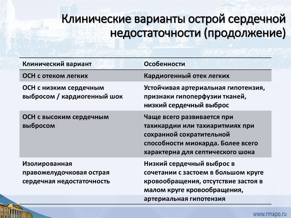 Клинические варианты острой сердечнойнедостаточности (продолжение)