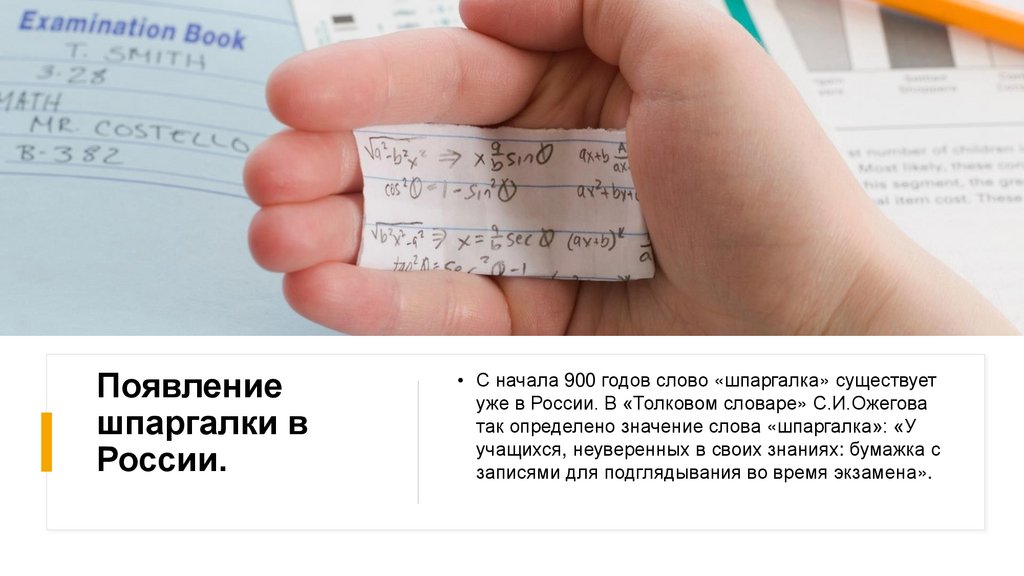 • С начала 900 годов слово «шпаргалка» существует