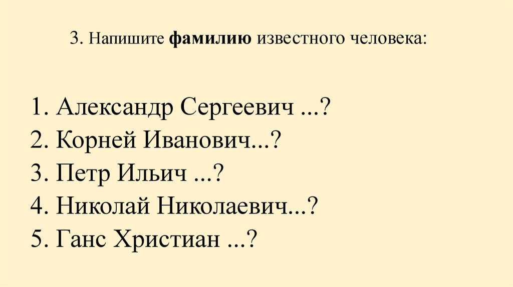 3. Напишите фамилию известного человека:1. Александр Сергеевич ...?