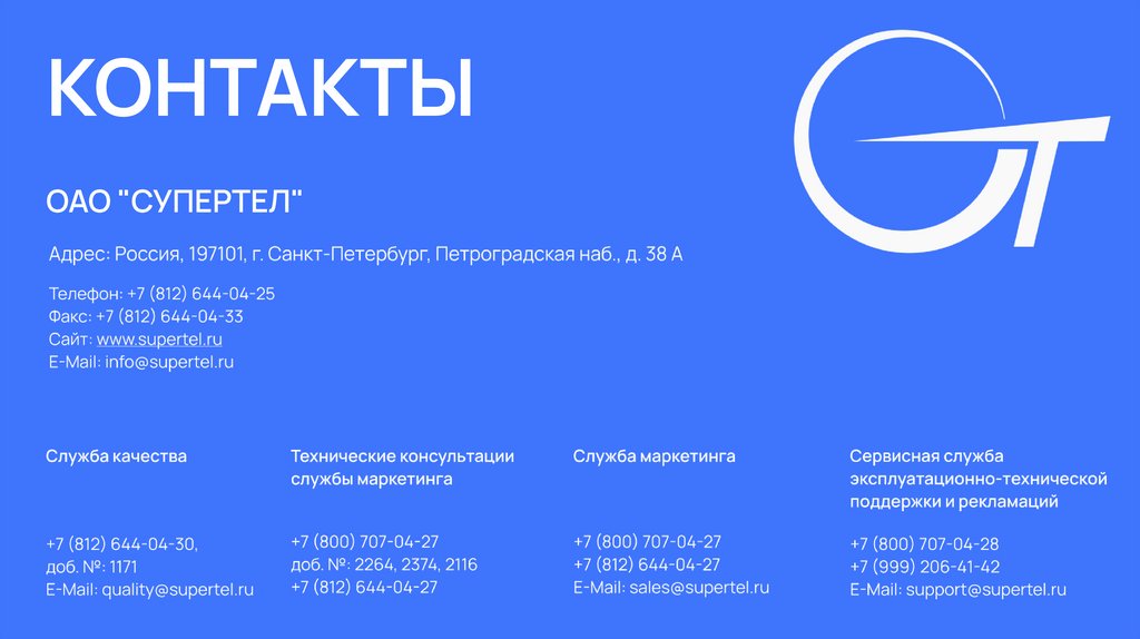 Оборудование ОАО "Супертел"