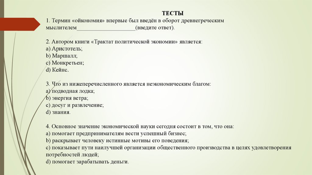 4. Основное значение экономической науки сегодня состоит в том, что она: