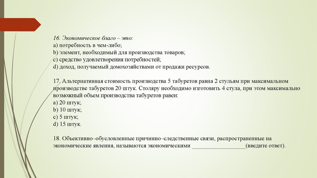 16. Экономическое благо – это:a) потребность в чем-либо;