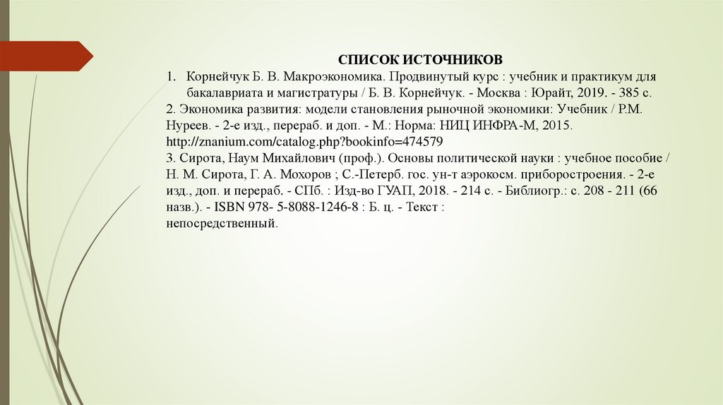 СПИСОК ИСТОЧНИКОВ1. Корнейчук Б. В. Макроэкономика. Продвинутый курс : учебник и практикум для