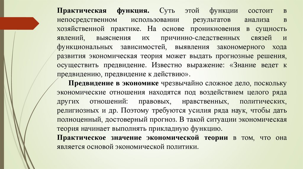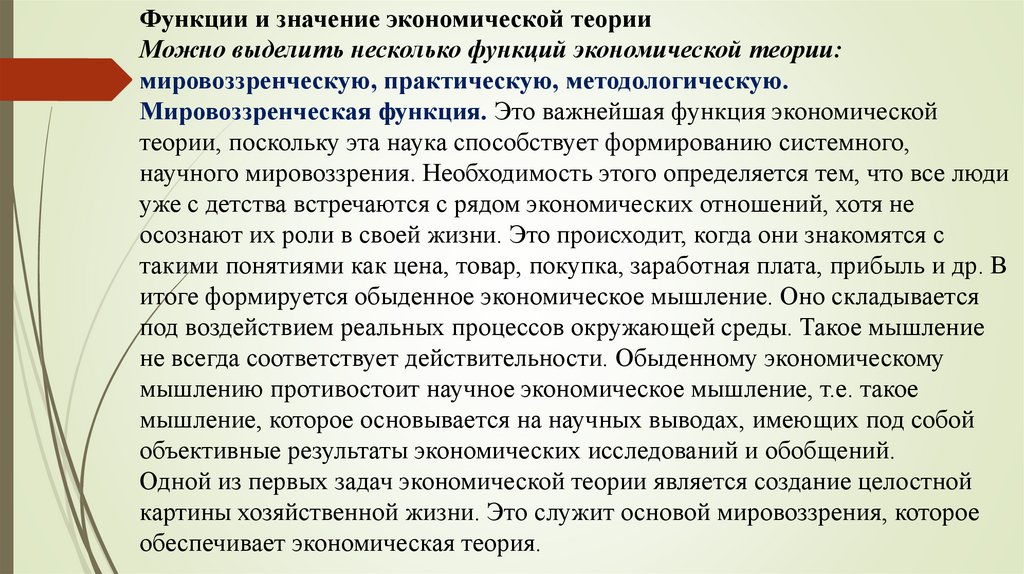 Функции и значение экономической теорииМожно выделить несколько функций экономической теории: