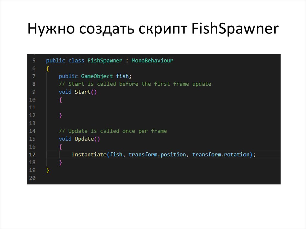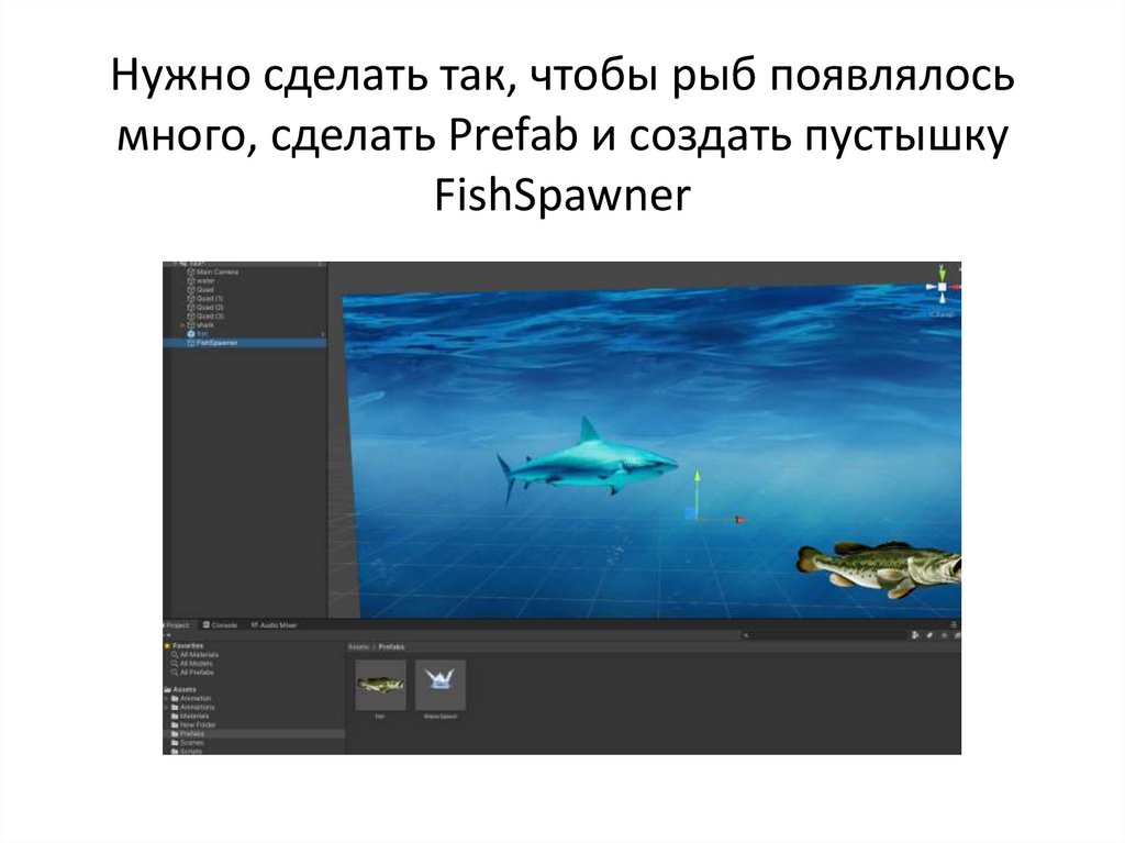 Нужно сделать так, чтобы рыб появлялосьмного, сделать Prefab и создать пустышку