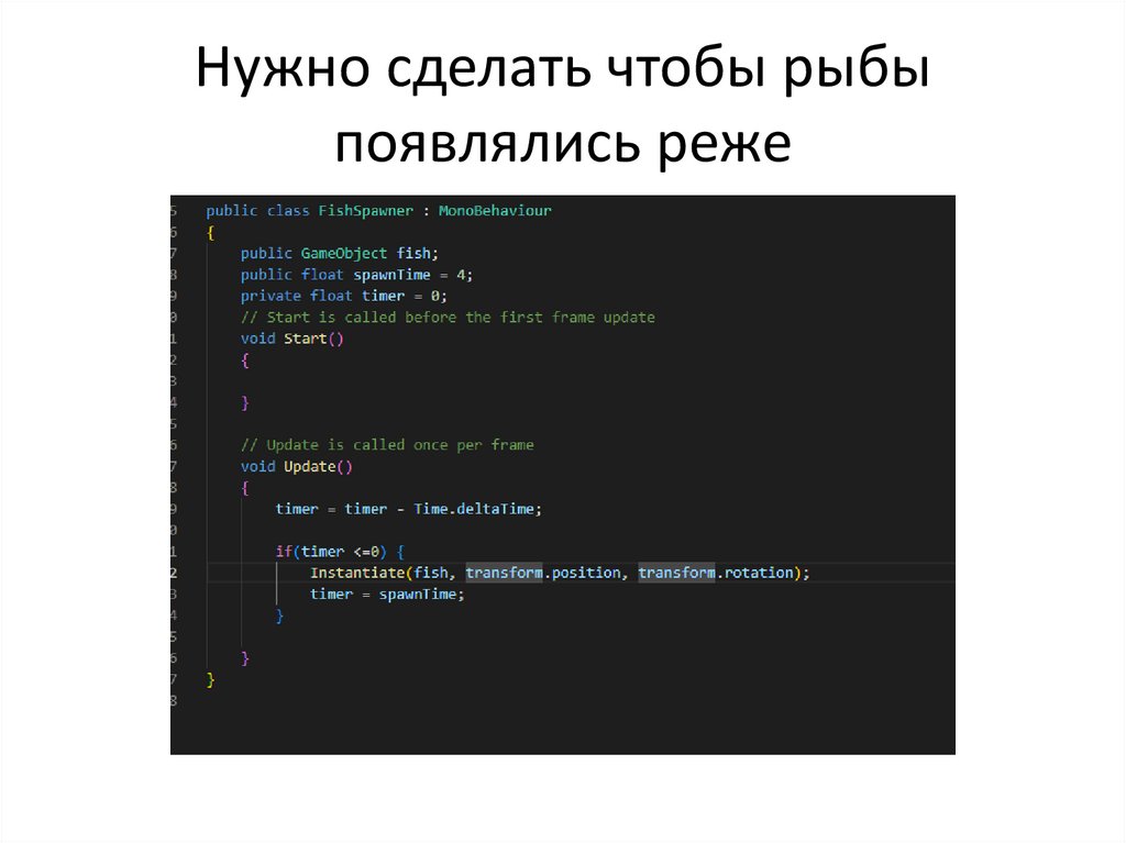 Нужно сделать чтобы рыбыпоявлялись реже