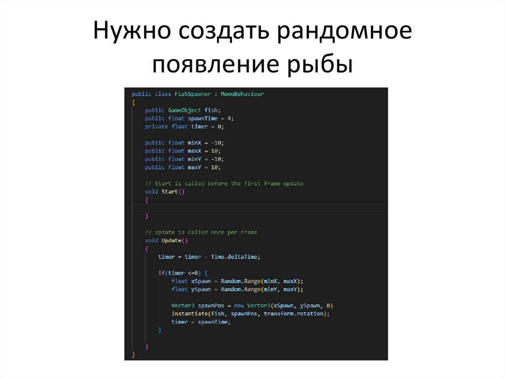 Нужно создать рандомноепоявление рыбы