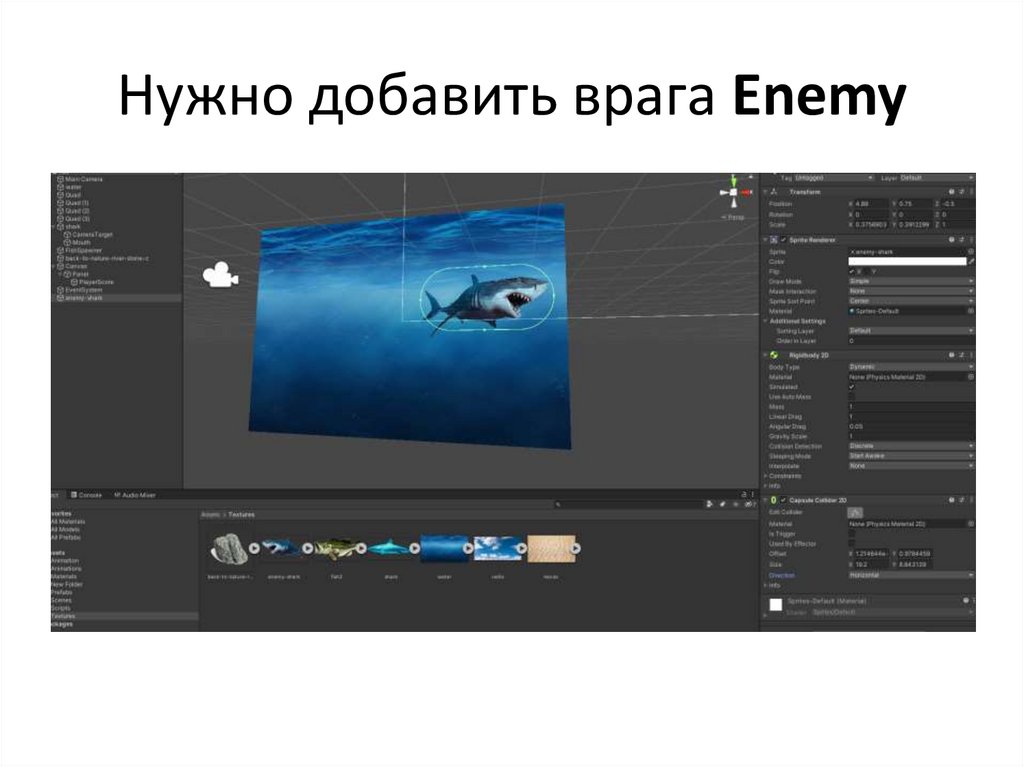 Префаб рыбы нужно переместить впроекте в папку «Textures»