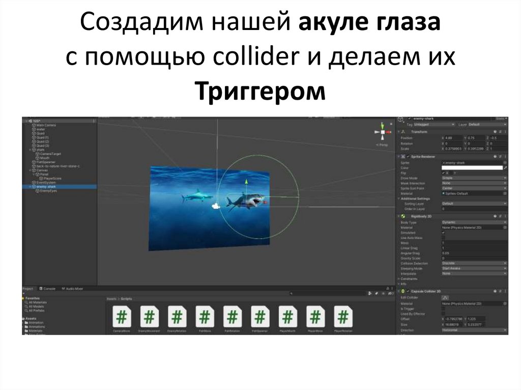 Создадим нашей акуле глазас помощью сollider и делаем их