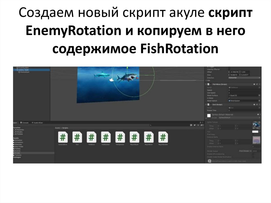Создаем новый скрипт акуле скриптEnemyRotation и копируем в него