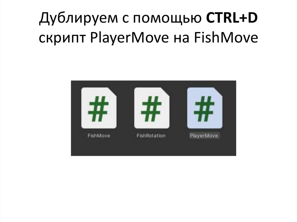 Дублируем с помощью СTRL+Dскрипт PlayerMove на FishMove