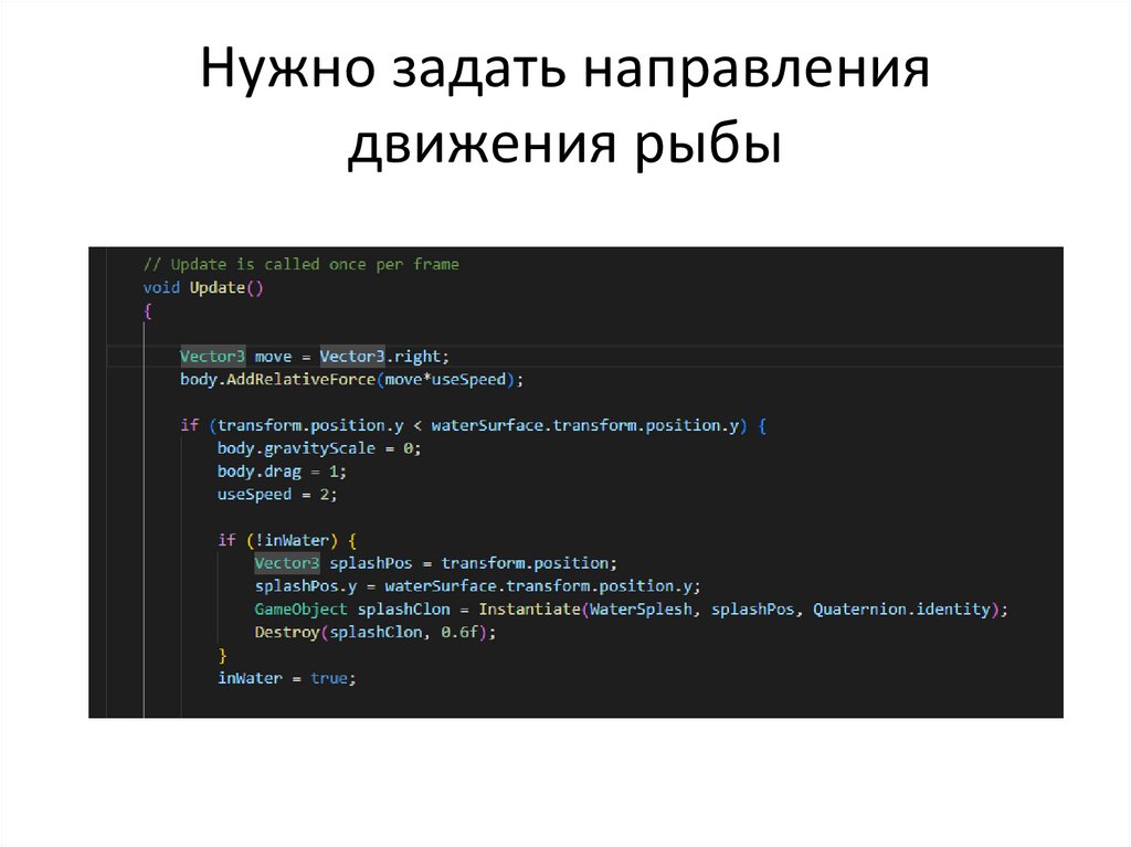 Нужно задать направлениядвижения рыбы