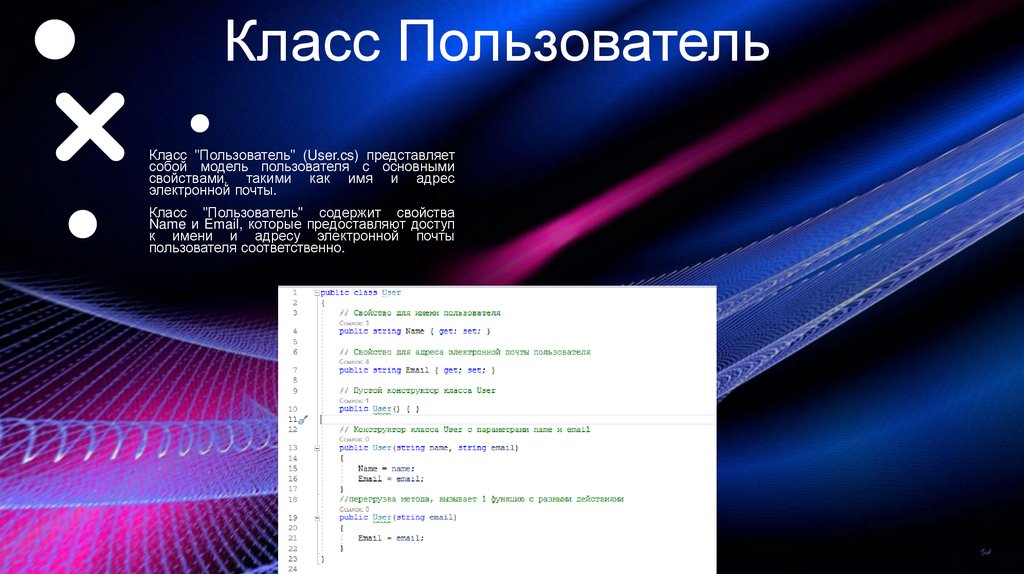 Класс ПользовательКласс "Пользователь" (User.cs) представляет