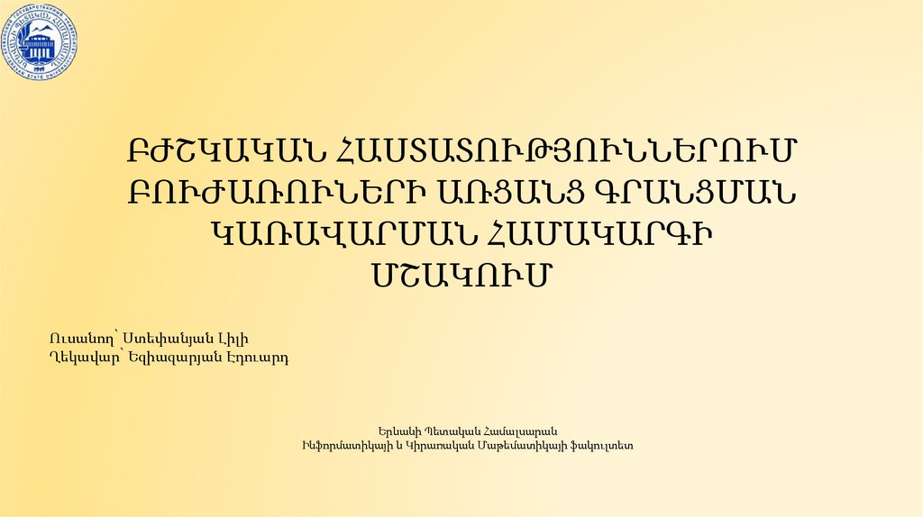 ԲԺՇԿԱԿԱՆ ՀԱՍՏԱՏՈՒԹՅՈՒՆՆԵՐՈՒՄԲՈՒԺԱՌՈՒՆԵՐԻ ԱՌՑԱՆՑ ԳՐԱՆՑՄԱՆ