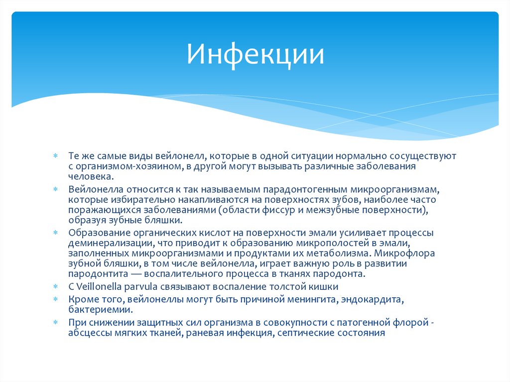 ИнфекцииТе же самые виды вейлонелл, которые в одной ситуации нормально сосуществуют