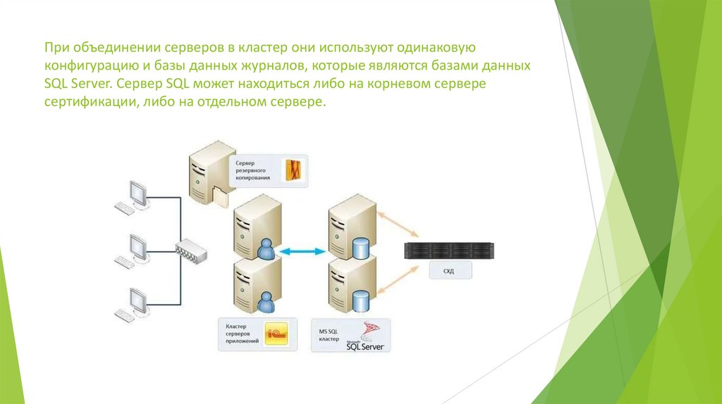При объединении серверов в кластер они используют одинаковуюконфигурацию и базы данных журналов, которые являются базами данных
