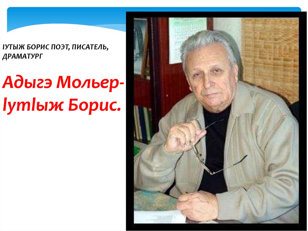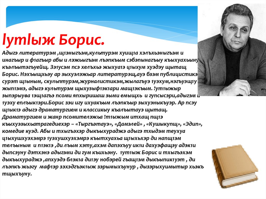 lутlыж Борис.Адыгэ литературэм ,щ1эныгъэм,культурэм хуищ1а хэлъхьэныгъэм и