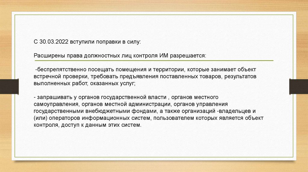 объектом контроля, без оформления встречной проверки. С указанной даты контролеры вправе запрашивать информацию, документы и материалы в