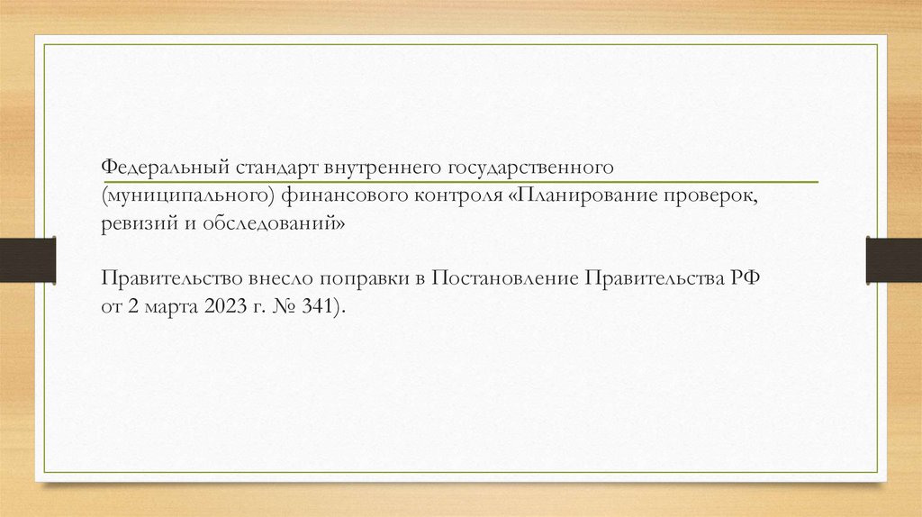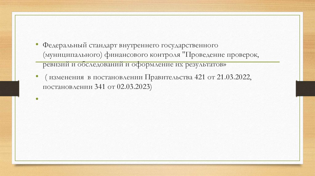 • Федеральный стандарт внутреннего государственного(муниципального) финансового контроля "Проведение проверок,