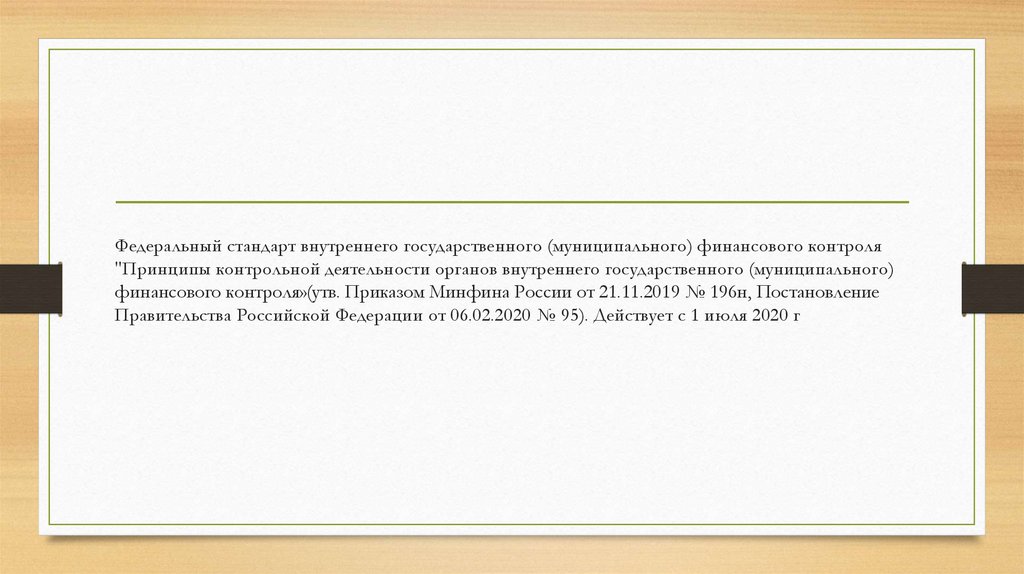 Федеральный стандарт внутреннего государственного (муниципального) финансового контроля"Принципы контрольной деятельности органов внутреннего государственного (муниципального)