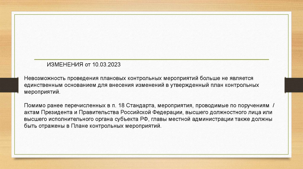 ИЗМЕНЕНИЯ от 10.03.2023Невозможность проведения плановых контрольных мероприятий больше не является