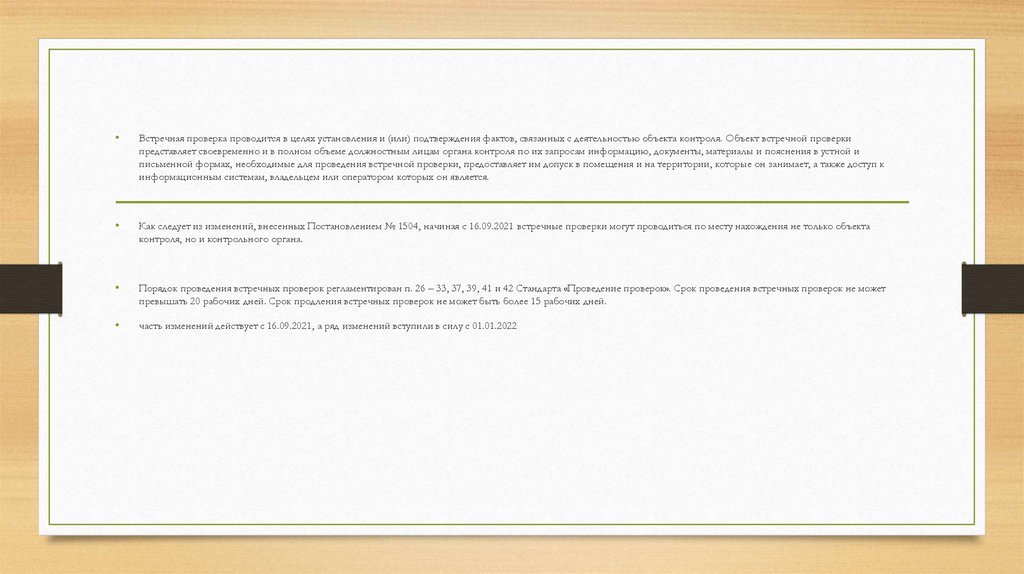 Как следует из изменений, внесенных Постановлением № 1504, начиная с 16.09.2021 встречные проверки могут проводиться по месту нахождения не только объекта