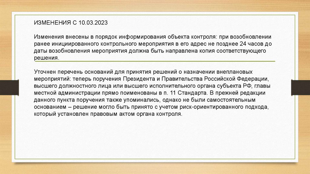 ИЗМЕНЕНИЯ С 10.03.2023Изменения внесены в порядок информирования объекта контроля: при возобновлении
