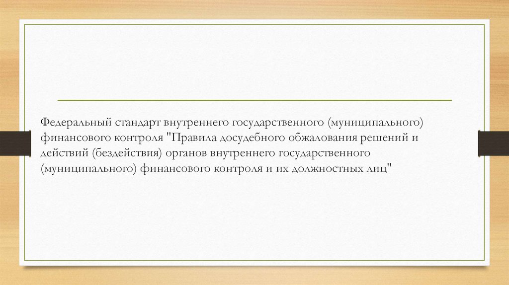 Федеральный стандарт внутреннего государственного (муниципального)финансового контроля "Правила досудебного обжалования решений и