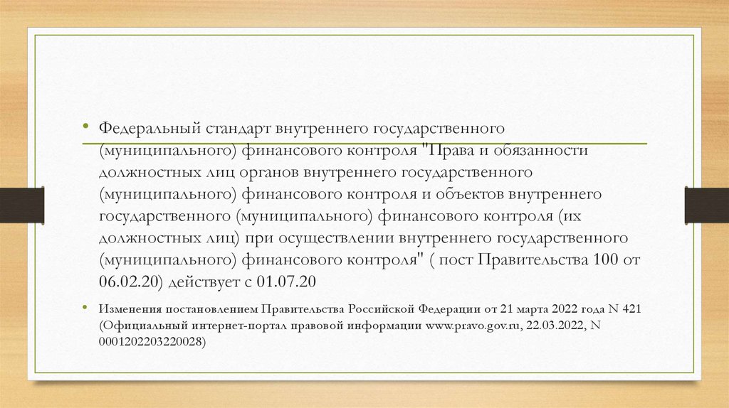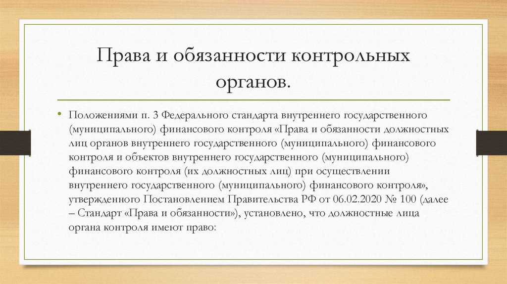 • Федеральный стандарт внутреннего государственного(муниципального) финансового контроля "Права и обязанности