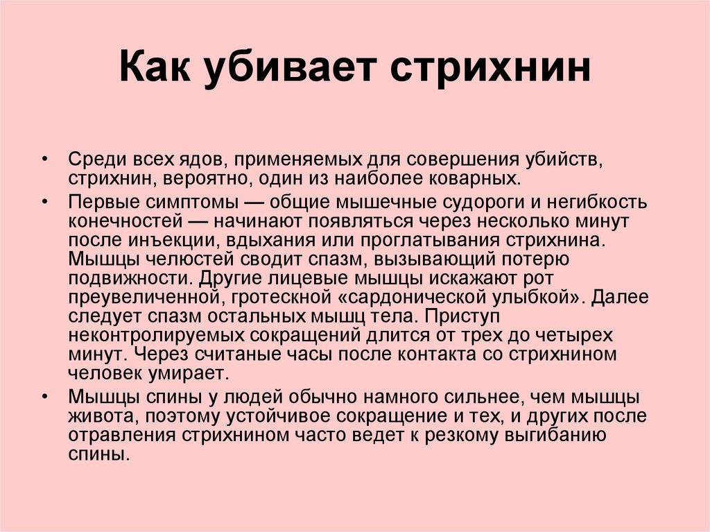 Как убивает стрихнин• Среди всех ядов, применяемых для совершения убийств,