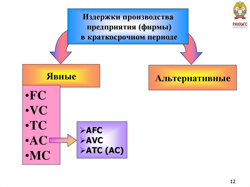 1. Издержки производства предприятия(фирмы) в краткосрочном и