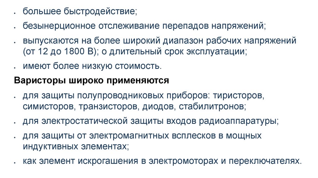большее быстродействие;безынерционное отслеживание перепадов напряжений;